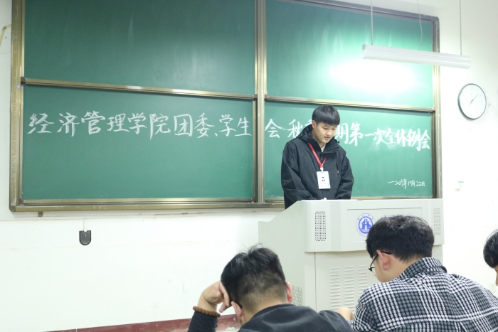团委(学生)副书记及学生会主席团成员依次发言。他们结合自身经历,阐述工作中的点滴,鼓励并要求各位团委成员、学生会干事将学生会宗旨落实到工作中,为学生服务。并对各位成员的未来收获表示期待。接着由各部门部长介绍部门工作详情以及现阶段主要工作任务,并对大一干事的工作予以厚望。全体大一干事表现活跃,踊跃上台发言。