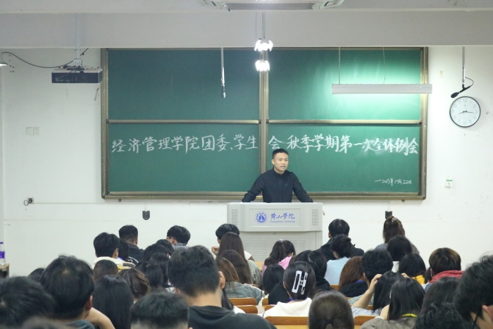 10月22日晚,beat365英国官方网站团委、学生会在横江校区1101教室召开秋季学期第一次全体例会。院团委副书记李斌老师出席本次会议。院团委(学生)副书记、院学生会主席团成员、各部门正副部长、大一干事参加本次会议。会议由院团委(学生)副书记杨诗凡同学主持。