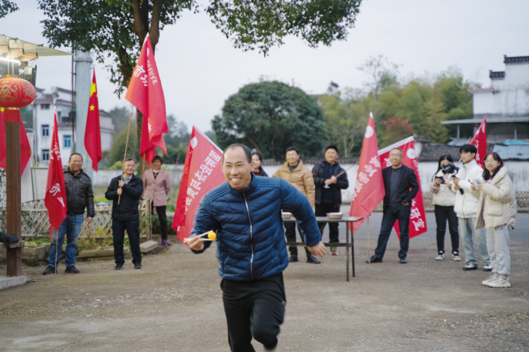 团建活动共有黄萝尖古道徒步比赛和“筷人一步”接力运球比赛两个环节。黄萝尖古道徒步比赛从红色革命根据地小练村出发,到达黄萝尖瞭望哨,全长大约4公里。在曲折蜿蜒的山路上,全体参赛人员精神抖擞、意气风发、奋勇争先,充分展现了学院职工众奋发向上的精神风貌和健康快乐的生活态度。“筷人一步”接力运球比赛以教研室为单位进行分组,每组队员采用接力的方式用筷子把盆里的乒乓球夹起,以最快、最稳的方式夹到指定的盆中,两分钟内夹到的球最多者获得胜利。整个比赛现场既紧张激烈,又妙趣横生,现场摇旗呐喊,加油喝彩声不断,直到比赛项目结束,所有老师仍然兴致勃勃,意犹未尽。