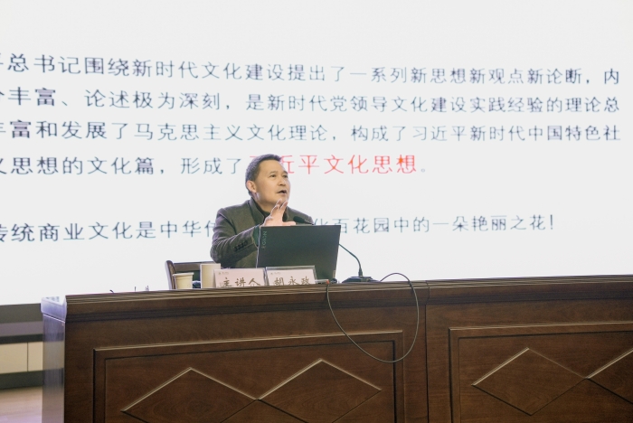 胡永政紧紧围绕习近平文化思想中弘扬中华优秀传统文化主旨开展论述,从中国是四大文明古国之一、先秦文明与古希腊文明比较分析论证了中国为什么可以“文化自信”。接着胡永政用具体案例和生动人物故事从中国商业文明的起源、崛起和兴盛来阐述中国传统商业文化是中国传统文化中“璀璨明珠”。