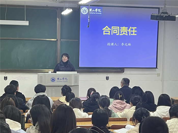 活动伊始,安徽省优秀教师李之琳副教授以合同责任为主题,为大家带来了一堂生动而深刻的《经济法》示范课。李老师以其深厚的学术功底和丰富的教学经验,将复杂的法律条文与生动的案例相结合,深入浅出地阐述了合同责任的相关内容。她的课堂语言风趣幽默,逻辑清晰,赢得了在场师生的阵阵掌声。