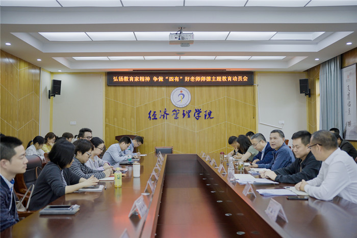 为大力弘扬教育家精神,激励引导教师争做“四有”好老师。6月5日下午,beat365英国官方网站在横江校区文华楼会议室组织召开“弘扬教育家精神·争做“四有”好老师”师德师德主题教育动员会,学院领导出席,全体教职工参加,会议由院党委书记胡永政主持。