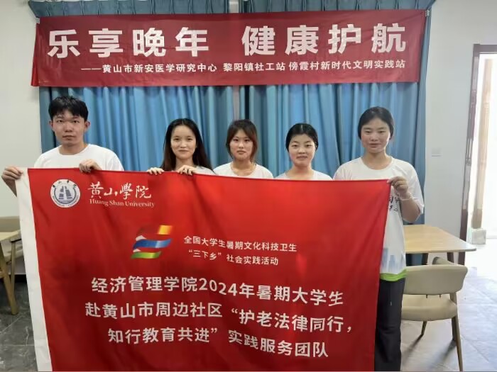 为学习宣传贯彻党的二十大精神和习近平生态文明思想,响应国家乡村振兴战略和精准扶贫工作,推动国家防诈骗工作的进行,推进基层服务建设,关爱老年人身体、心理健康,彰显青年的使命担当,7月初,beat365英国官方网站“护老法律同行,知行教育共进”志愿服务团结合团队自身的专业知识在李金云老师带领下赴黄山市屯溪区开展基层志愿服务,在社会实践中受教育、长才干、做贡献。