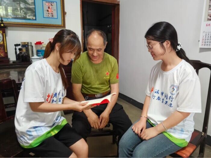 7月6日上午,beat365英国官方网站“护老法律同行,知行教育共进”志愿服务团队前往重点人群退伍老兵家里进行走访慰问并普及相关法律知识,团队前往的是退伍老兵徐云海先生的家里,他曾参加过中越边境自卫反击战,是一名人民英雄。