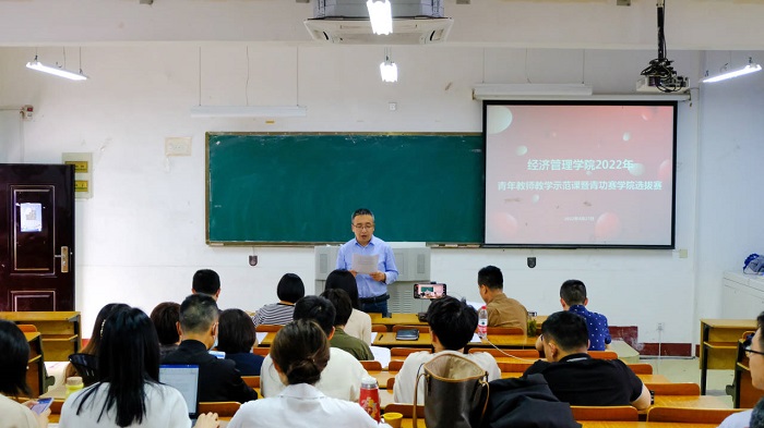4月27日下午,该院青年教师教学示范课暨第十四届青功赛学院选拔赛活动在横江校区教学楼1102教室举行。院长赵士德、副院长郭宏斌和40岁以下青年教师现场参与,其他教师线上观摩比赛。郭宏斌主持,评委聘请教学名师组成。