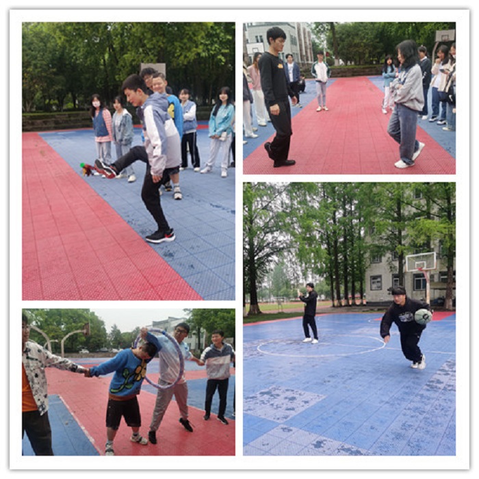 此次活动以游戏形式进行,分别为踢毽子、单脚立、运球、多人传圈、扔沙包,全班分为2组进行PK赛,班长和团支书担任各项比赛裁判。两个小组在经历激烈的对决后分出了输赢,最后在输得一方现场完成俯卧撑惩罚。最后,活动在一片欢声笑语下落下帷幕。