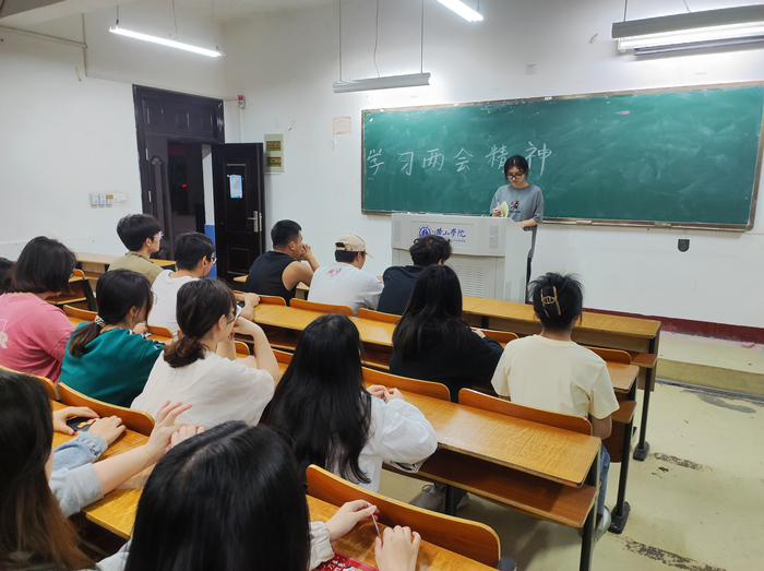 4月27日,beat365英国官方网站20营销团支部在1102教室举办了学习全国“两会”精神主题团日活动,活动由团支部书记于嘉琳主持,团支部所有同学共同参加,辅导员蒋璐璐到场指导。