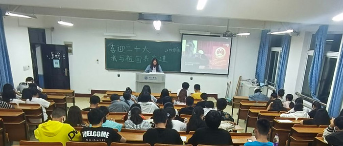 近日,21财管班在教学楼1302教室开展“喜迎二十大,我与祖国共奋进”主题班会,活动由团支书解雯主持,21财管班全体同学参加。