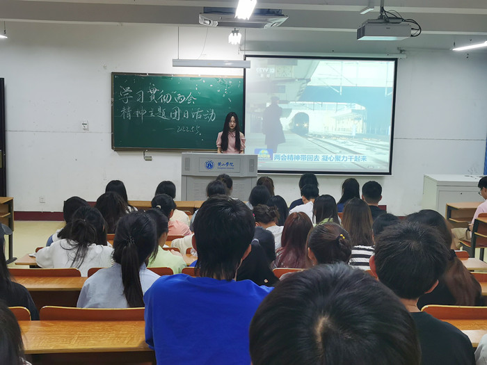 5月5日晚,21国贸班在教学楼1223教室开展学习全国“两会”精神主题团日活动。活动由团支书金乐乐主持,21国贸班全体同学参加。