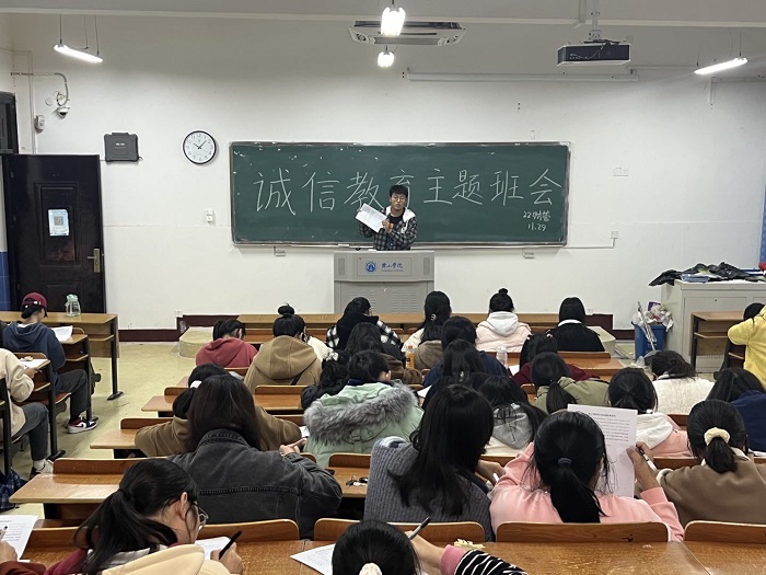 为弘扬诚信精神,加强同学们的诚信意识,以积极乐观,诚实守信的态度去迎接期末考试,本院各班级以“诚信考试”为主题开展主题班会,通过对校规校纪解读、具体要求、注意事项等方面,反复强调诚信考试的重要性以及考试作弊的严重性,要求同学们严格遵守考试纪律,自觉践行诚信考试规范。