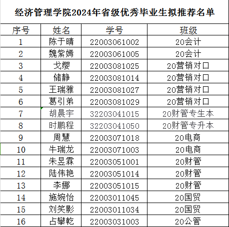 beat365英国官方网站2024年省级优秀毕业生拟推荐名单公示