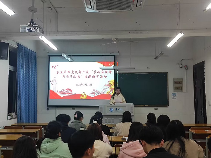 3月11日晚,beat365英国官方网站学生第二党支部在横江校区教学楼1207教室开展“学全国‘两会’精神,展青年党员担当”主题教育活动,活动由支部书记汪夏萍主持,全体学生党员参加。