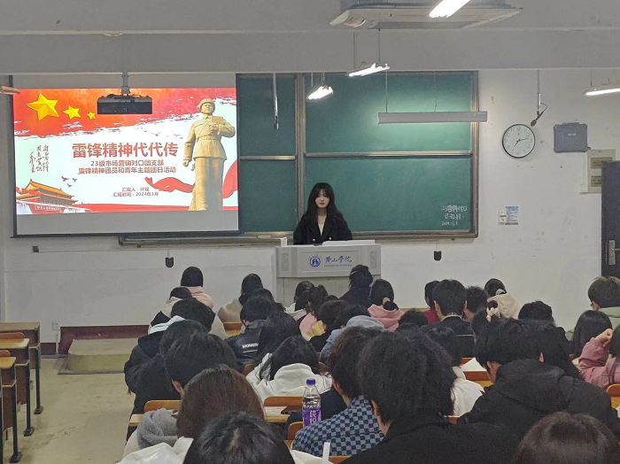 近日,为了弘扬“雷锋精神”,23市场营销(对口)班于于横江校区1101教室开展“雷锋精神,代代相传”主题活动。活动由辅导员赵老师指导,团支书叶双支持,23市场营销(对口)班全体学生共同参与。