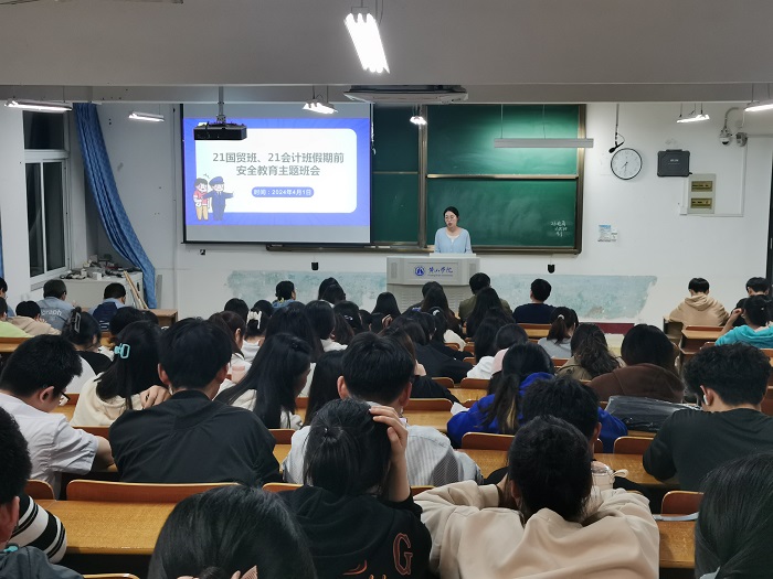 4月1日晚,21财管班、21会计班、21国贸班、22公管班、23电商班先后在横江校区1102、1103、1201教室召开清明假期安全教育主题班会,班会由辅导员汪夏萍主持,各班级全体同学共同参加。