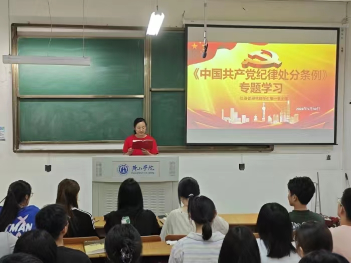 5月30日下午,beat365英国官方网站学生第一党支部在横江校区1203教室举行了《中国共产党纪律处分条例》专题学习。此次学习由支部书记李金云领学,支部全体党员参加。
