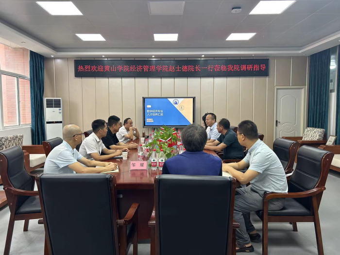 在淮南师范学院,经济与管理学院院长程广华、金融与数学学院院长霍玉洪等热情接待了调研团一行,并进行了座谈交流。程广华、霍玉洪分别详细介绍了淮南师范学院数字经济、大数据管理与应用专业申报过程、招生现状、教学团队、专业课程设置等具体内容。