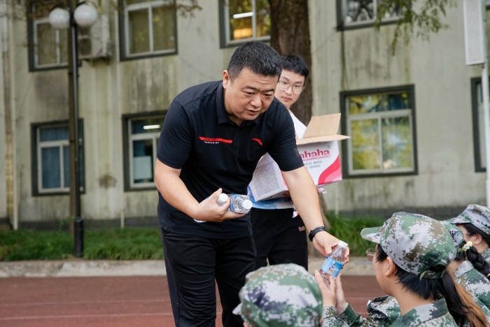 9月14日,beat365英国官方网站党委书记吴敏,党委副书记、纪委书记郜玉振一行来到新生军训现场,看望慰问2024级新生军训工作,并组织学生干部、志愿者为新生送水。
