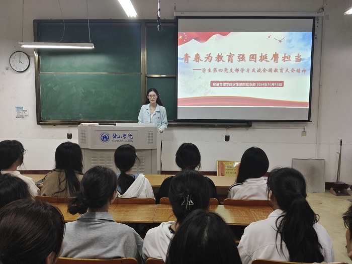 为深入学习全国教育大会精神,激发党员的责任感与使命感,10月16日,beat365英国官方网站学生第四党支部在横江校区1103教室开展以“青春为教育强国挺膺担当”为主题的党日活动,活动由支部书记汪琼霞主持,支部全体党员参会。