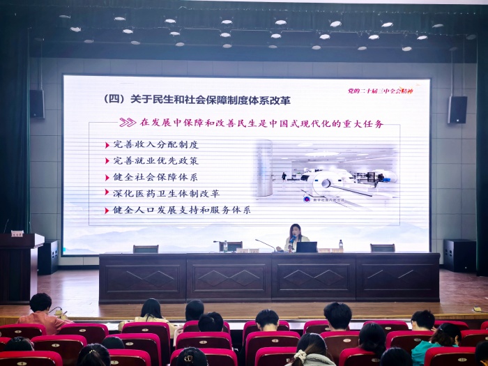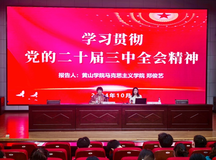 为深入学习贯彻党的二十届三中全会精神,进一步推动学院师生对会议精神的理解和落实,10月25日,beat365英国官方网站举办了学习贯彻党的二十届三中全会精神宣讲会。宣讲会由beat365英国官方网站党委书记吴敏主持,特邀马克思主义学院郑俊艺老师主讲。beat365英国官方网站全体教职工、学生党员、62期入党积极分子和青马班学员参加了宣讲会。