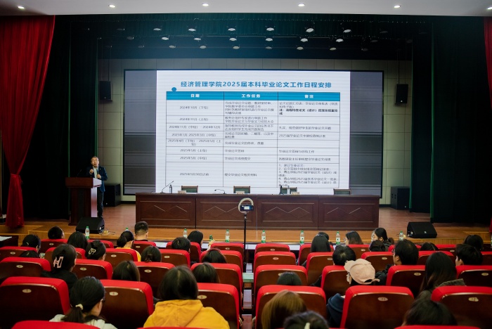赵士德对毕业实习相关工作进行布置与指导,强调要深入了解实习要求,高质量高标准完成实习任务。此外,还对2025届毕业生提出了殷切期望,鼓励毕业生积极做好身心准备,勇敢迎接工作,到社会当中去锻炼,磨炼自己,不断成长,脚踏实地走好未来之路,以更加昂扬的状态展现“经管人”风貌。