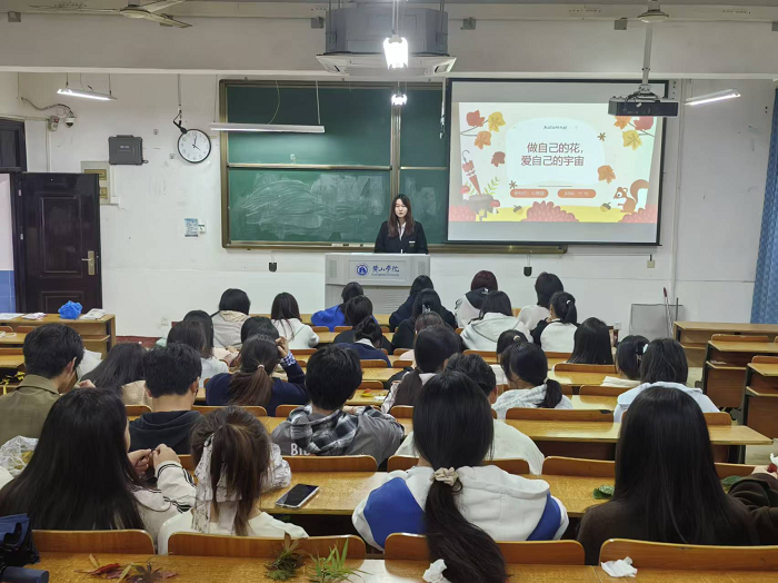 11月15日下午,beat365英国官方网站心理部在横江校区1103教室开展“做自己的花,爱自己的宇宙”心理活动。