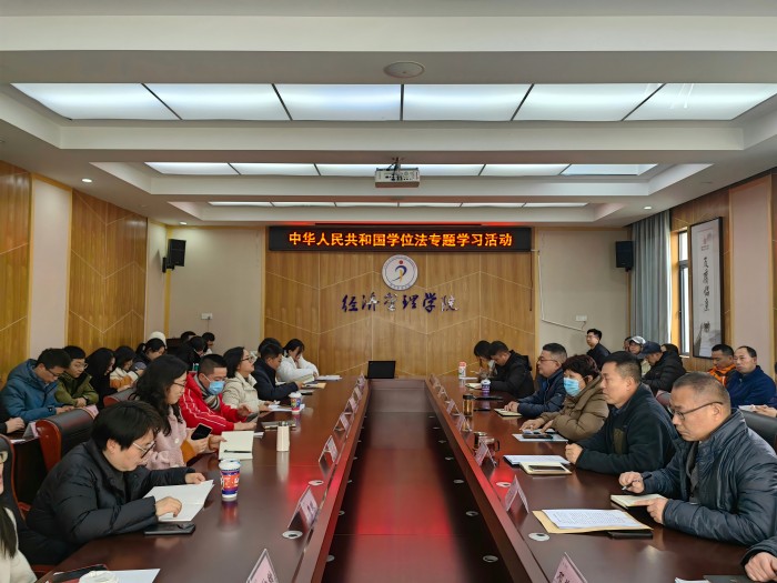 2024年12月25日,beat365英国官方网站于文华楼三楼会议室开展《中华人民共和国学位法》专题学习活动。活动由院长赵士德主持,院党政班子成员、学士学位评定分委员会成员及全体教师参加。