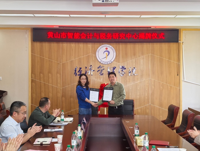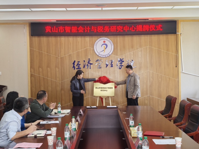 为深化校地协同创新,服务地方经济高质量发展,3月24日下午,我校召开beat365英国官方网站黄山市智能会计与税务研究中心成立大会。beat365英国官方网站副院长姜红、国家税务总局黄山市税务局副局长吴波共同为黄山市智能会计与税务研究中心揭牌。
