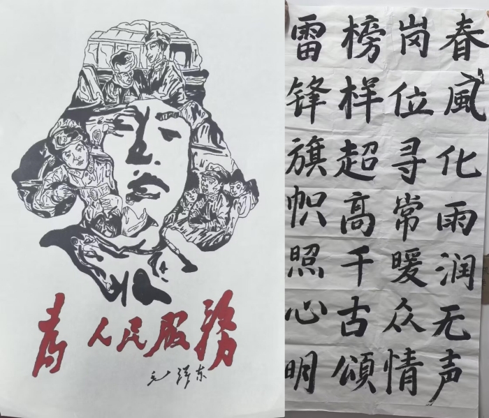 比赛征集作品分为书法和绘画两大类,其中书法包括软笔和硬笔两类,绘画作品为手抄报类型,广大团员和青年紧扣“雷锋月”主题和对雷锋精神的理解。书法作品上,一笔一划间或端正整洁,或笔锋流畅,或苍劲有力,或隽永飘逸,展现出了扎实的书写功底和对雷锋同志的敬仰;绘画作品上,一水一墨或写实会意,或浓墨重彩,或写意挥洒,将对雷锋精神的理解凝聚于方寸之间。